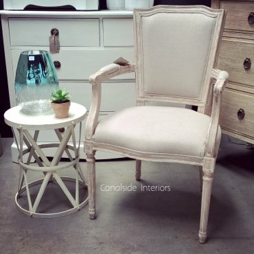 Stark Carver Chair – Whitewash with cream upholstery – Sold Out