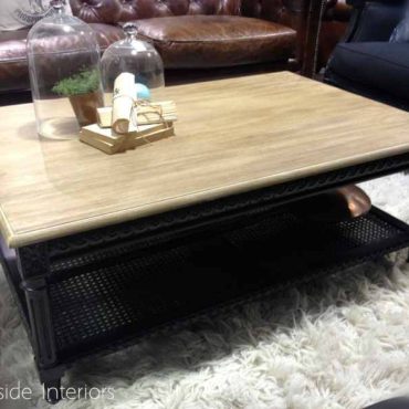 Hamptons Rattan Coffee Table – Distressed Black with Limewash Top – Sold Out (Out of Stock)