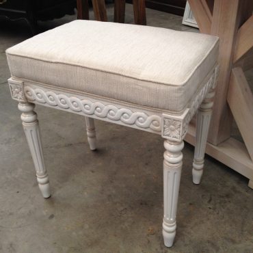 Nadine Stool – Distressed White with cream textured upholstery – Sold Out (Out of Stock)