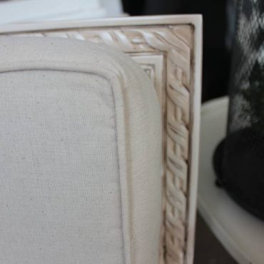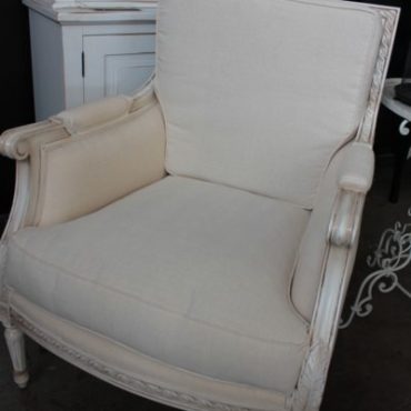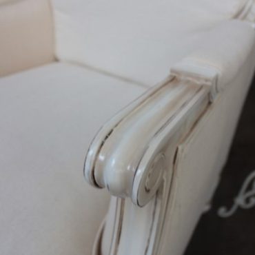 Distressed Off White with Linen Upholstery and Rattan Back: SOLD OUT