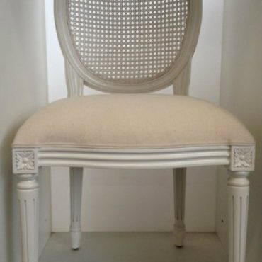 White with Rattan Back and Linen Upholstery – LIMITED STOCK