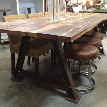 The Protractor Dining Table is the epitome of Industrial Chic. It has a heavy metal base with a rustic recycled wood top which is also effectively framed in the metal.
