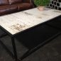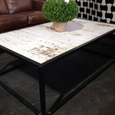 Iron Black Matt Finish Base with Recycled Teak Top in distressed white paint