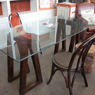 Trestle Glass Dining Table / Desk – Sold Out (Out of Stock)